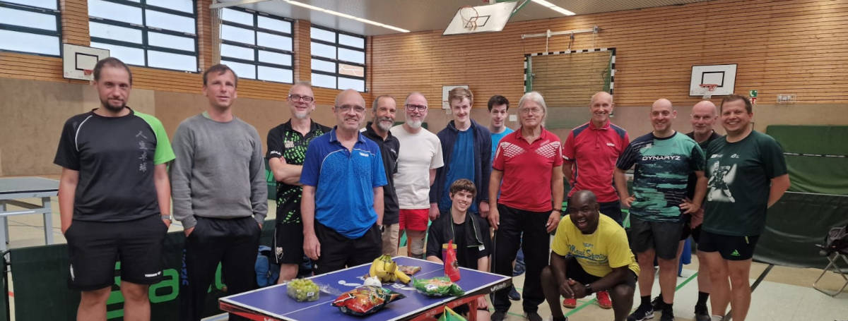 Das Foto vom letzten Race zeigt Spieler vom TSV Dorfmark, VfR Weddel, TTV Radebeul, TTC Herne, RSV Braunschweig, Pankower SV, TSV Rethen, MTV Almstedt, TTC Raguhn, TSV Schöppenstedt, Arminia Vechelde, Turnerschaft Hannover, MTV Braunschweig und Rossauer SV.